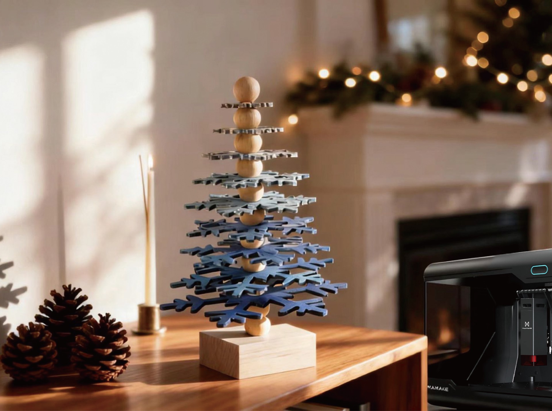 间隔珠:直径20mm原木圆珠(约12颗,用于分隔雪花层)